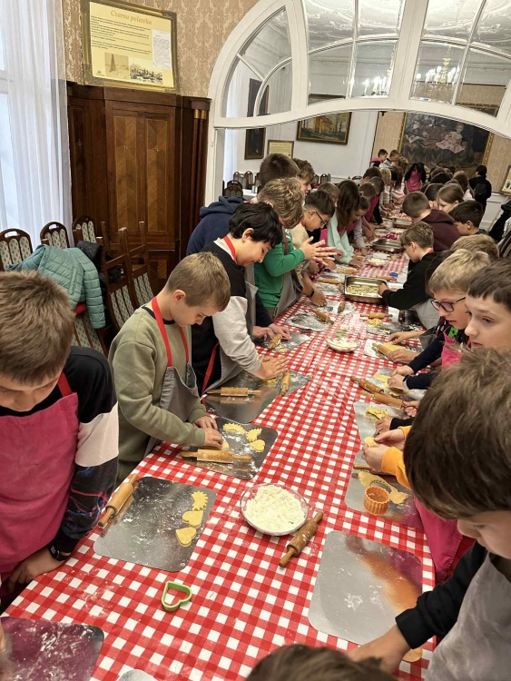 W dniu 30 września 2025r. uczniowie klas II-VIII w dwóch grupach udali się do Pałacu Długoszów . Właściciele rezydencji umożliwili nam zwiedzanie całego budynku – od piwnic po strych. Mieliśmy okazję obejrzeć wiele ciekawych eksponatów związanych bezpośrednio z postacią naszego patrona, jak i całej jego rodziny. Pani przewodnik przypomniała wiele faktów z życia senatora Władysława Długosza, a także przedstawiła losy rodziny przemysłowca z Siar. Drugą część spotkania stanowiły warsztaty pieczenia ciasteczek. Samodzielnie wykonane i udekorowane były przepyszne, a praca przy stołach sprzyjała integracji oraz zacieśnianiu więzi koleżeńskich. Na zakończenie spotkania wszyscy zjedli pieczoną na grillu kiełbasę.