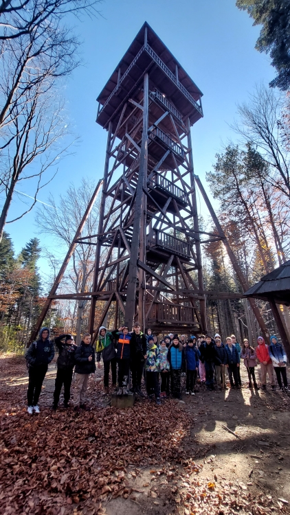 Trasa liczyła około 12 kilometrów i momentami przypominała… tor błotny. Pomimo tego nasi wytrwali piechurzy dzielnie maszerowali dalej. Na szczycie Ferdla z wieży widokowej podziwiali malowniczą panoramę Tatr.