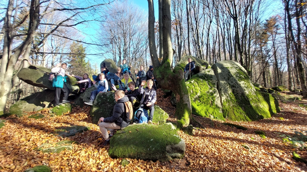 Kolejnym przystankiem był Rezerwat Kornuty- najstarszy rezerwat przyrody w Beskidzie Niskim, gdzie na młodych turystów czekały niezwykłe formacje skalne. Było to idealne miejsce, żeby złapać oddech, zrobić kilka zdjęć i przekąsić coś pysznego.